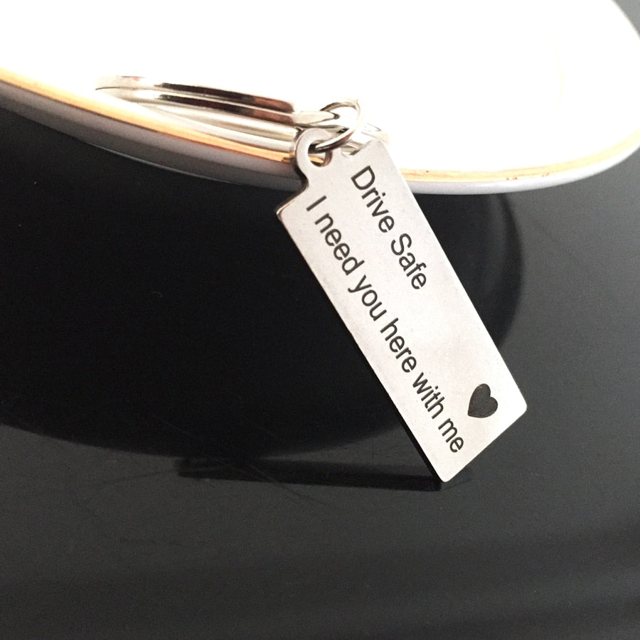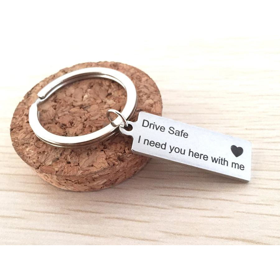 "Drive Safe I Need You Here With Me" Keychain