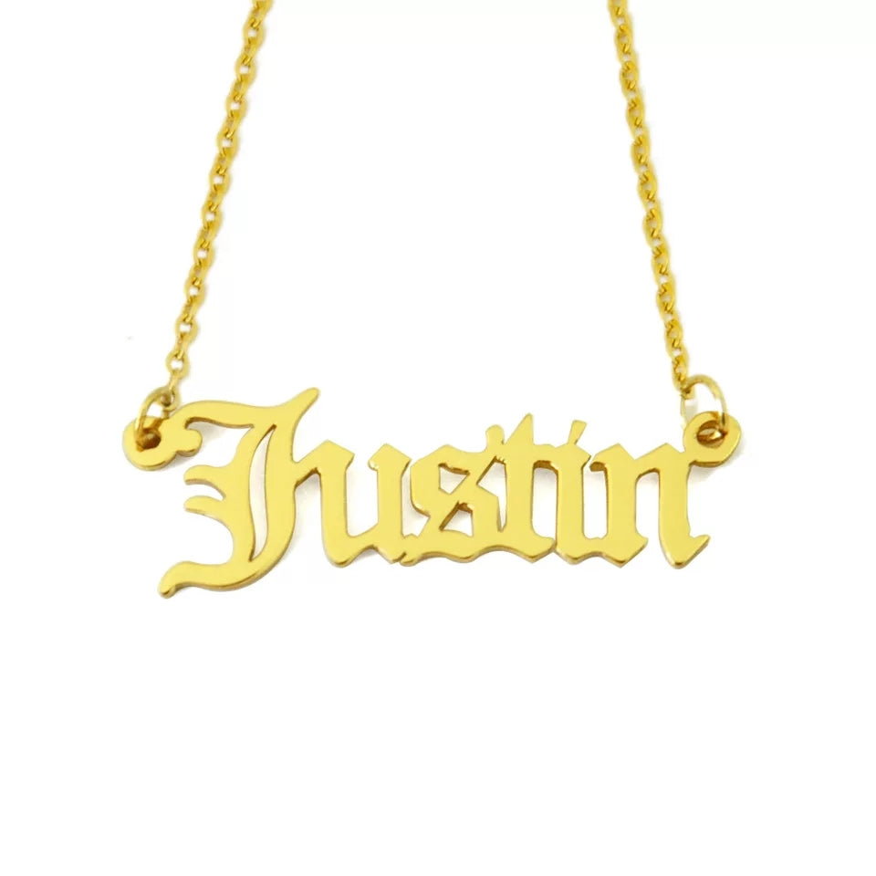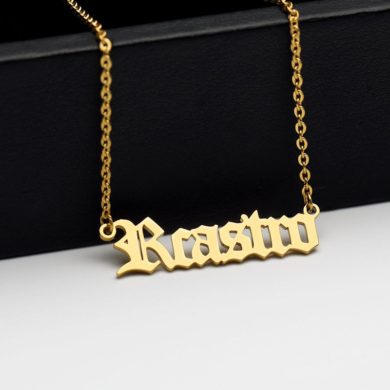 Turn heads everywhere you go! Our Old English Necklace makes a bold statement thanks to some truly incredible details. This necklace has beautiful detailed lettering in Latin Old English Script. Choose any name or word to celebrate yourself or someone you love. This necklace is unique beautiful and unexpected which makes it standout.